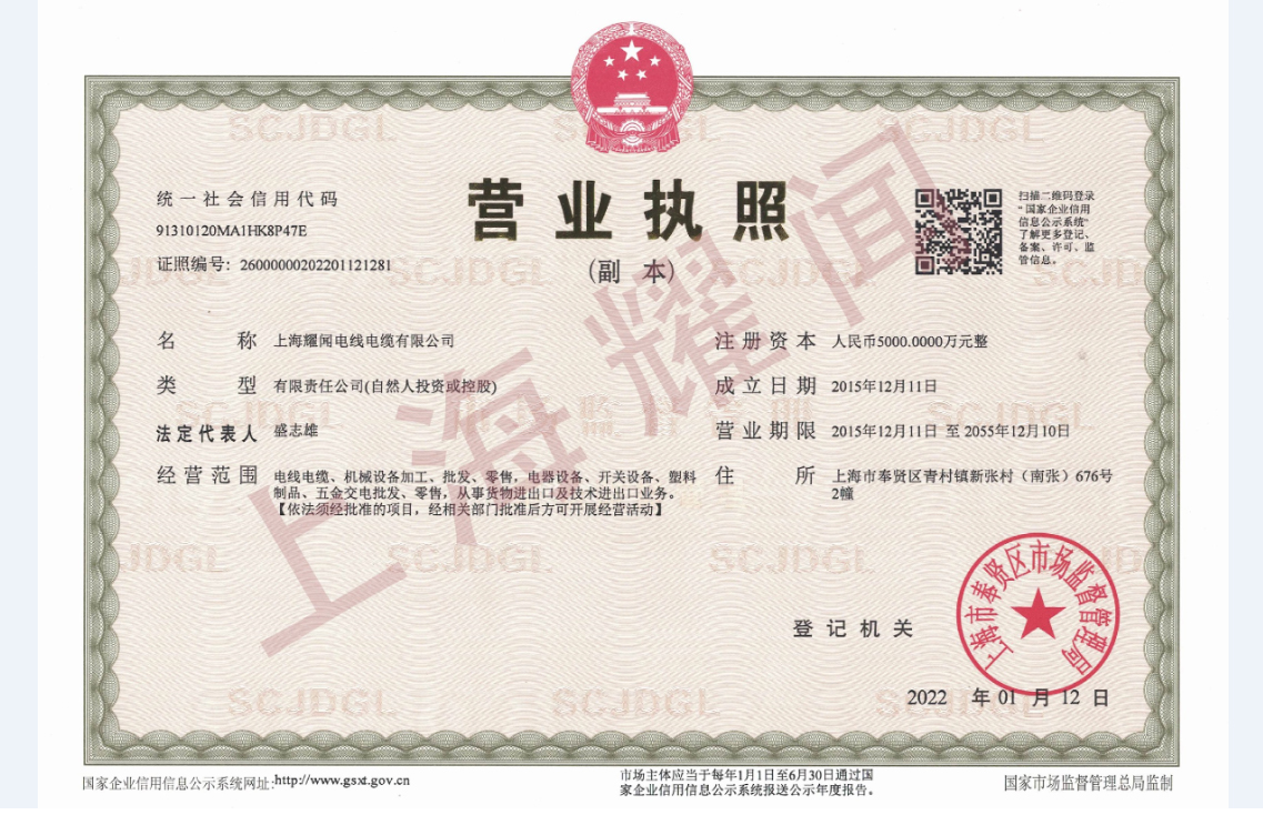 上海耀聞電線電纜有限公司成立于2015年,注冊(cè)資本5000萬元人民幣。是一家專注于電線電纜的研發(fā)、生產(chǎn)及銷售的高新技術(shù)企業(yè)。